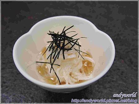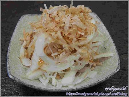 這盤是貼心的招待小菜。洋蔥保留微微辣度,搭配酸甜和風醬。
