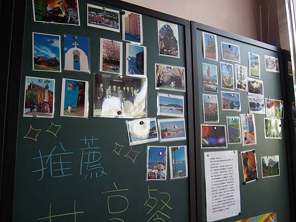 進入大門口,可以看到一片公佈欄,上面有墾丁的資訊和地圖,其中有一處專門貼著老闆與老闆娘四處旅行的照片