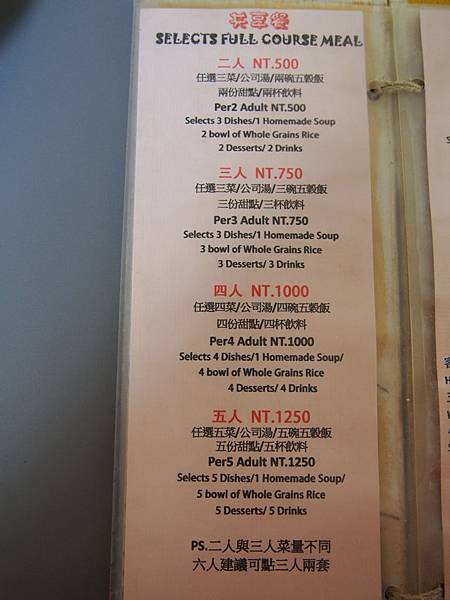 全家四位,所以我們選擇四人共享餐,選擇的菜色分別是: