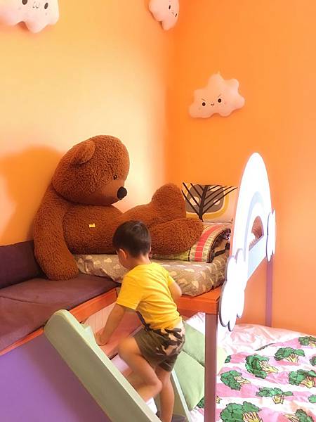 也發現上鋪有隻超大的熊熊及多朵白雲