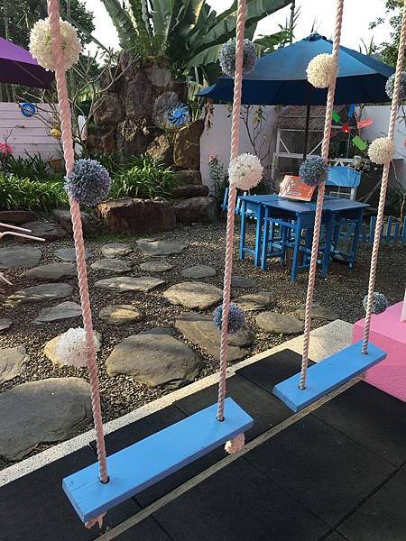 兩個燙鞦韆看起來是給小朋友玩得,以家長們的體重來看,要克制,別自己坐上去了~
