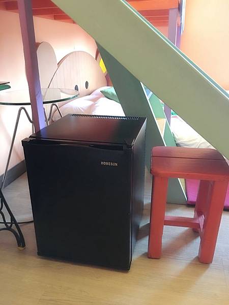 室內還有一台小冰箱,只是冰箱的調性與擺放與房間有些不搭