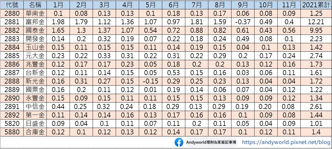 2021十月份金融股追蹤筆記